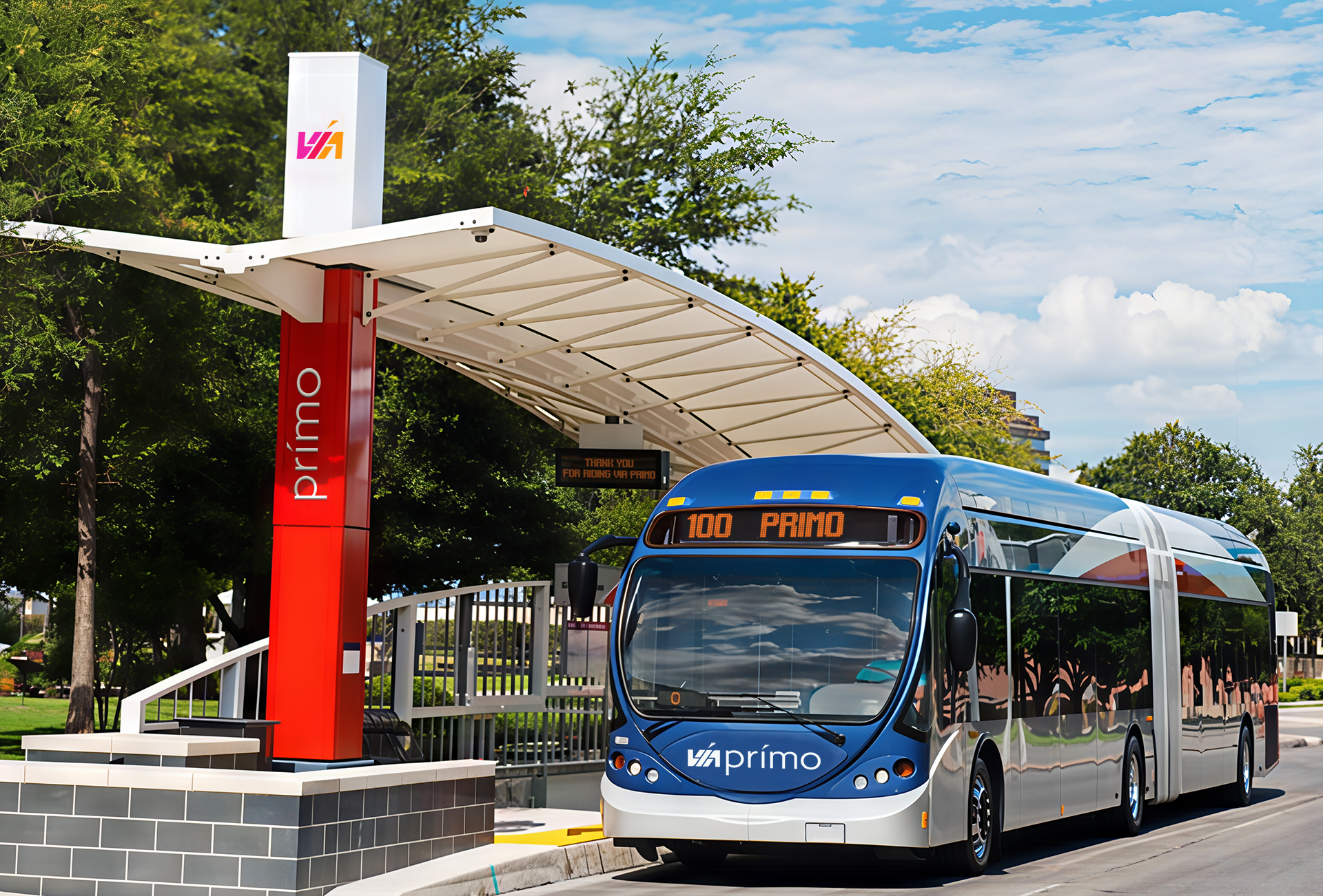VIA Metropolitan Transit in San Antonio, branding and design work was developed for the Primo Bus Rapid Transit (BRT) service. The project began with the development of the brand name itself “Primo”, a name that was selected both for its ability to work well in this multicultural city as well as to indicate the caliber of the service. The Primo brand name was compatible with VIA’s existing corporate brand structure, name, and logo which was also originally created by Ilium to draw on San Antonio’s long history as a multi-cultural city.